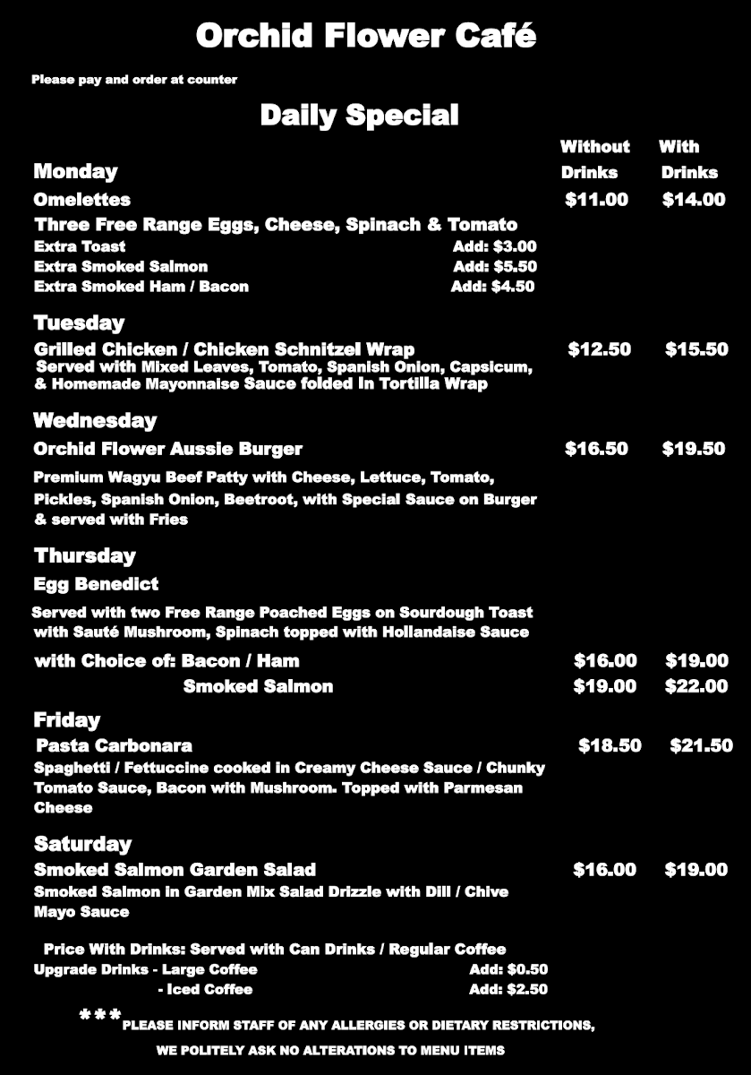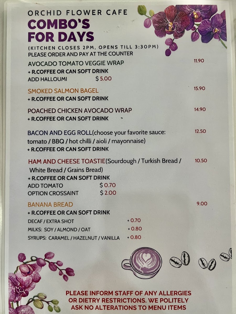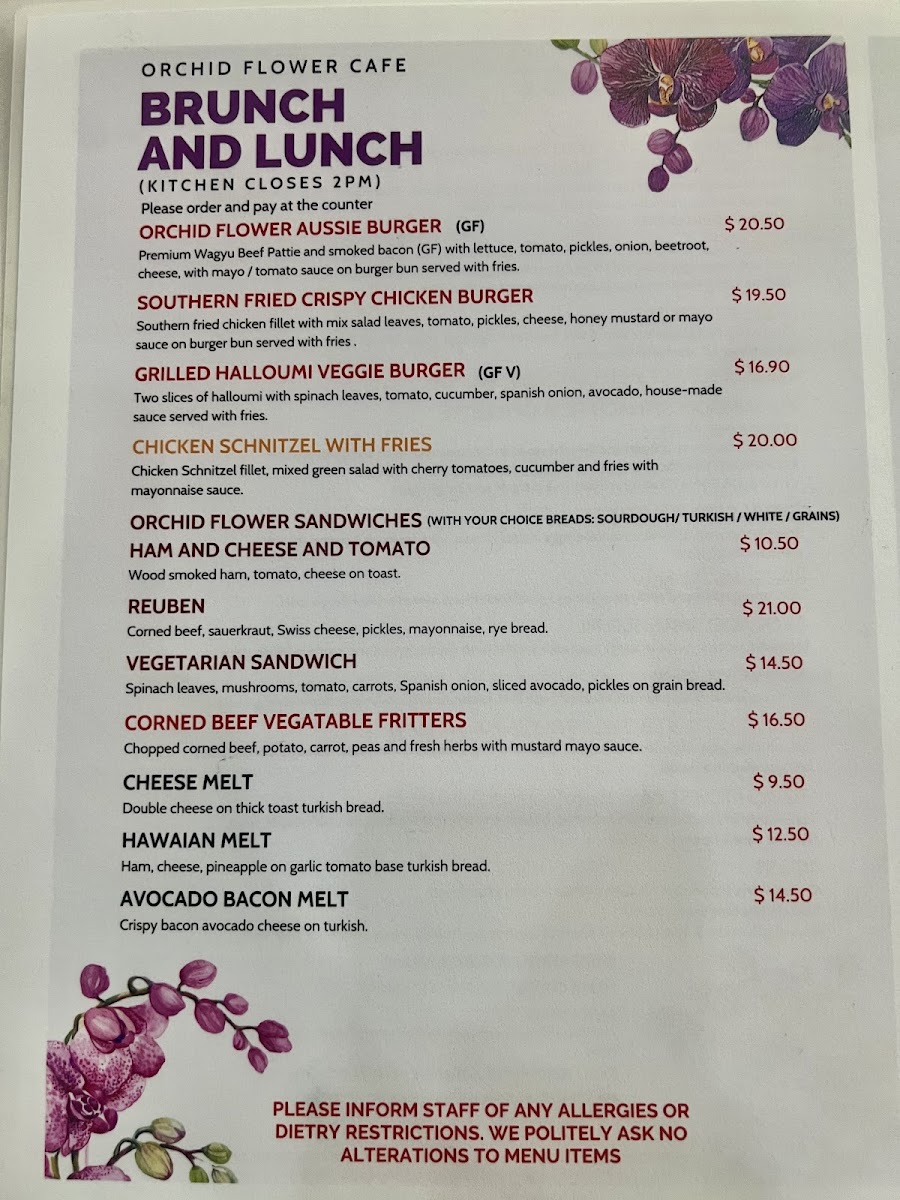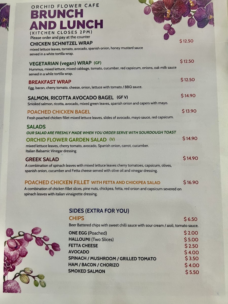 Orchid Flower Cafe 38 Atchison St St.Leonards Menu