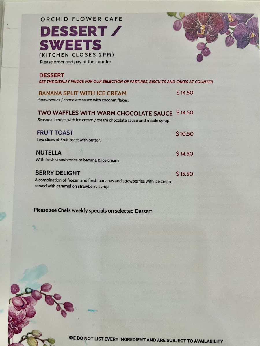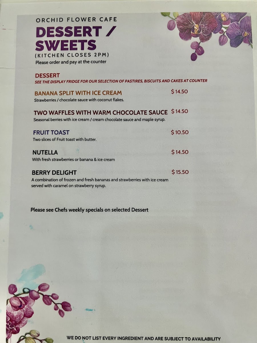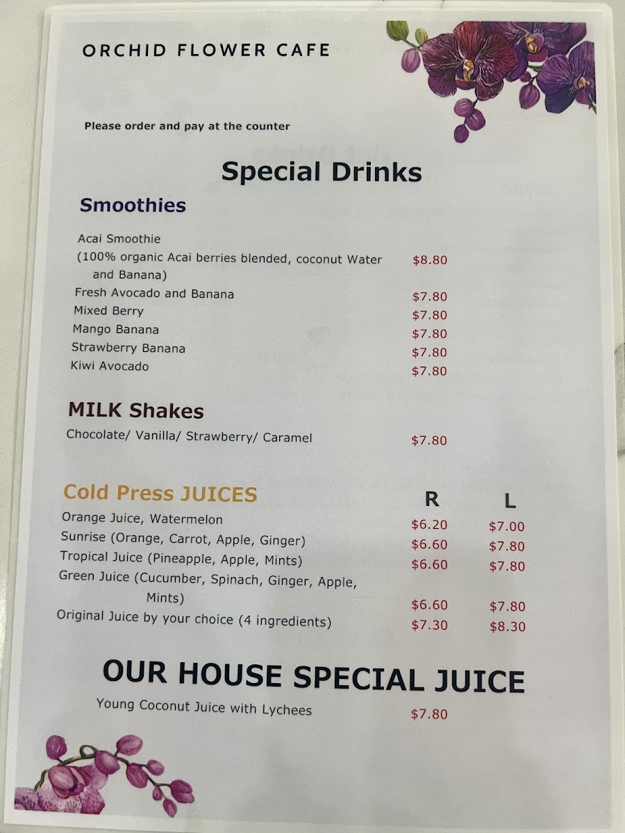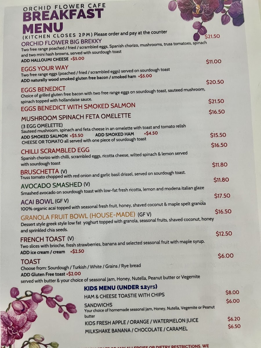 Orchid Flower Cafe 38 Atchison St St.Leonards Menu