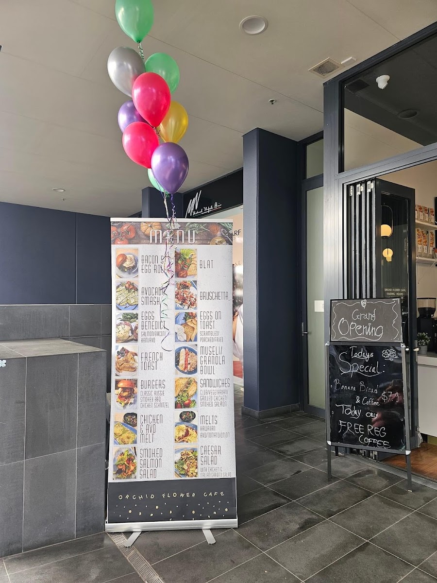 The menu at Orchid Flower Cafe, located at 38 Atchison St, St Leonards, offers a variety of options suitable for breakfast, coffee breaks, and light meals. It features a selection of hot beverages including coffee varieties such as lattes and matcha lattes. A range of fresh fruit options is also available, including açaí bowls, fruit salad juice bar items, and fruit plates.